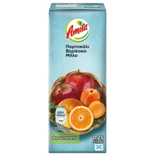Amita Φρουτοποτό Πορτοκάλι, Βερύκοκο & Μήλο 250ml