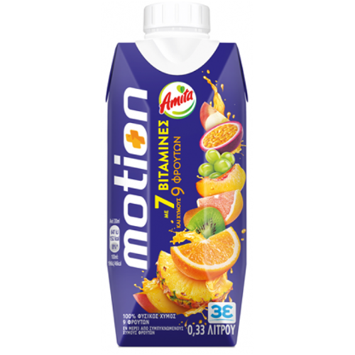 Η Amita Motion είναι ένας 100% Φυσικός Χυμός με 7 βιταμίνες και 9 φρούτα που σε γεμίζει ενέργεια.